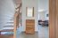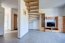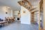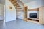 Die beiden Schlafzimmer, sowie ein WC, befinden sich im Obergeschoss. Im Erdgeschoss befindet sich das Wohnzimmer mit integrierter Küche und Essbereich, sowie ein Badezimmer mit Dusche.